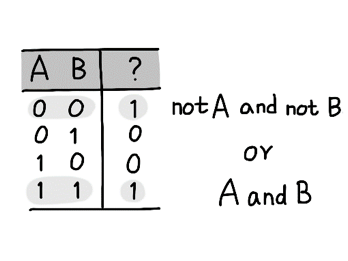 참/거짓이 서로 같을 때에만 1을 출력하고, 그 외의 경우에는 0을 출력한다.