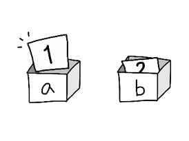int a, b; //정수 2개를 저장할 수 있는 int 형 변수 a와 b를 만들어라! int a; int b; 를 한 번에 줄여쓴 것이라고 생각하면 된다.