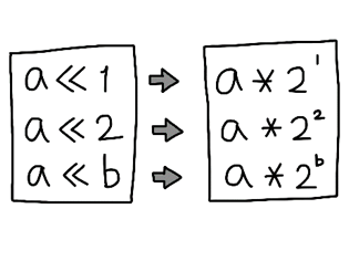 printf("%d", a << b); //210 = 1024 가 출력된다.