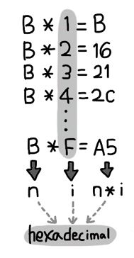 영일(01)이는 16진수끼리 곱하는 16진수 구구단?에 대해서 궁금해졌다.