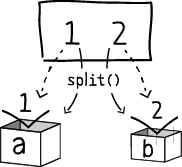 와 같이 실행하면, a에는 1, b에는 2가 저장된다.